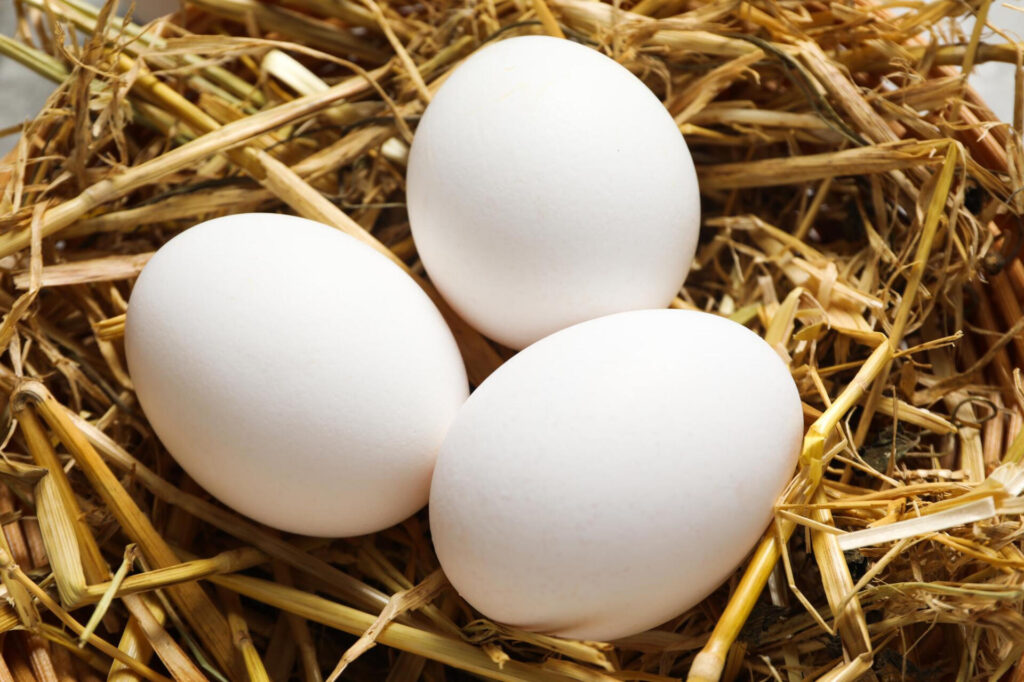 Depuis 2024, nos poules pondeuses élevées en plein air nous permettent de proposer des oeufs vendus directement sur les marchés. Nous sommes également éleveurs d’oies, avec la vente d’oies et d’oeufs d’oie en saison.